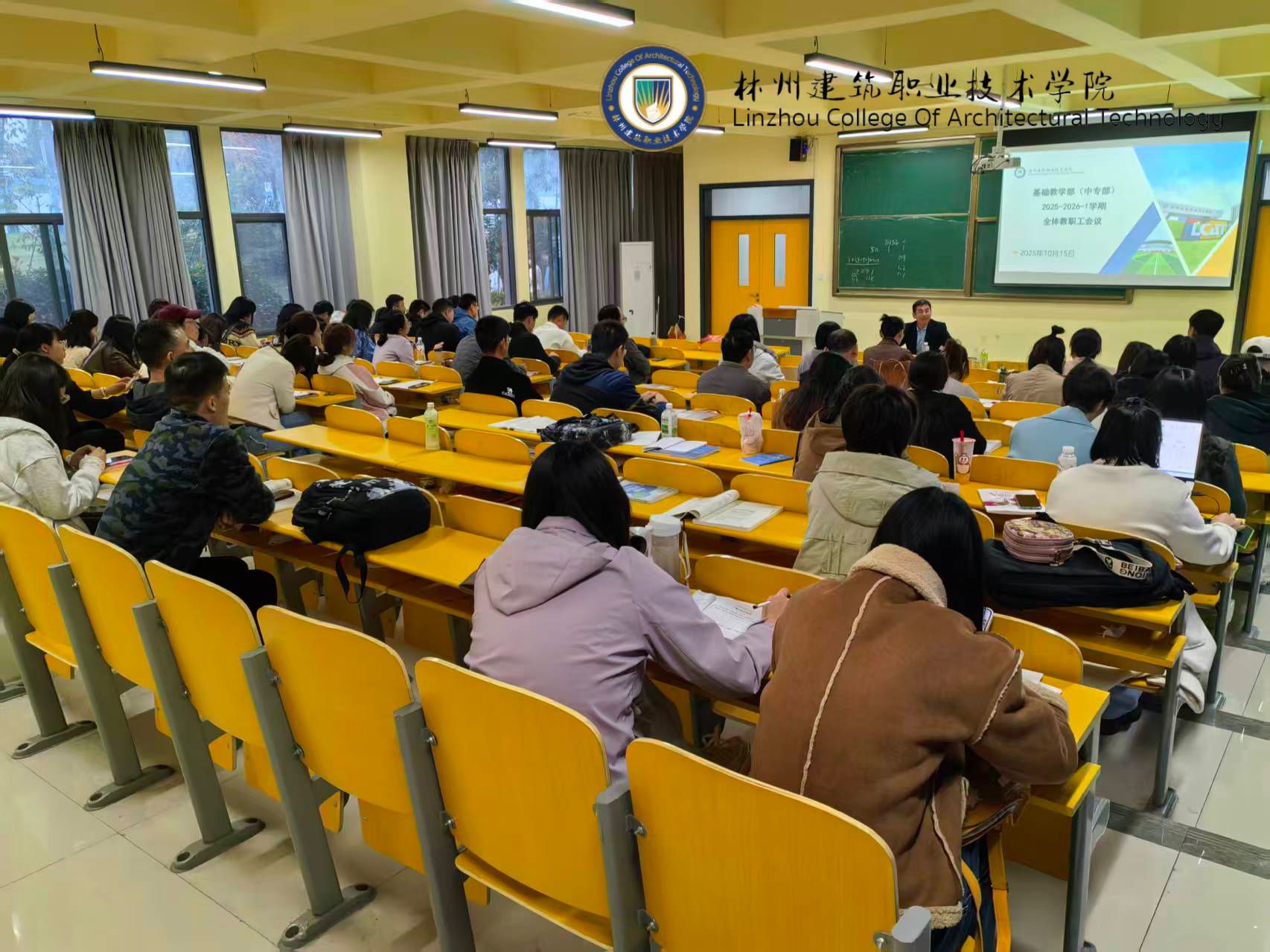 10月15日下午,林州建筑职业技术学院基础教学部召开2025-2026学年第一学期全体教职工会议,会议由基础教学部办公室主任张静峰主持,全体教职工参会。