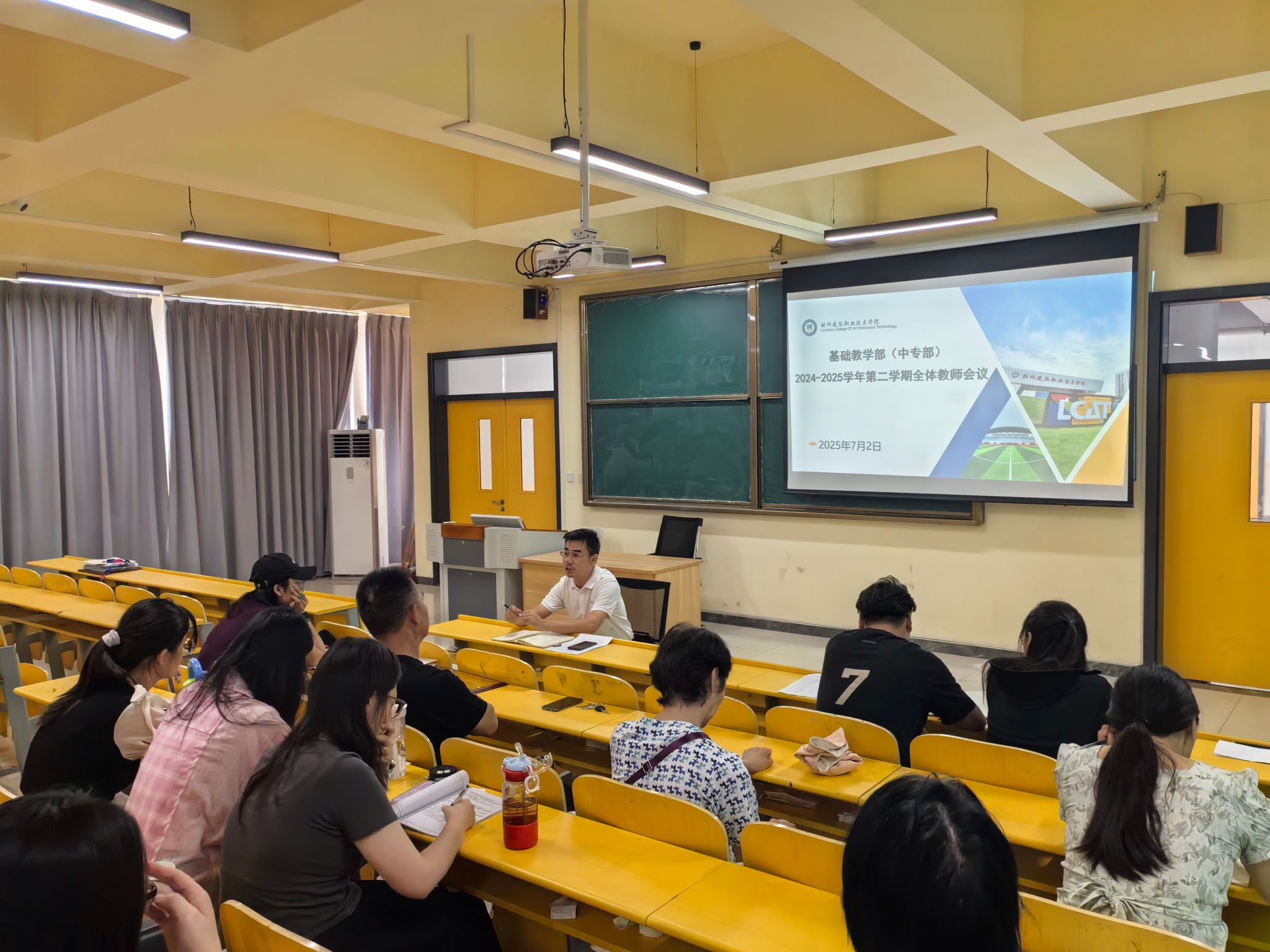 7月2日,基础教学部在综合楼会议室召开了 2024-2025 学年第二学期全体教职工会议。会议全面总结了本学期工作成果,并对下学期工作进行了部署。基础教学部全体教职工参加了本次会议。